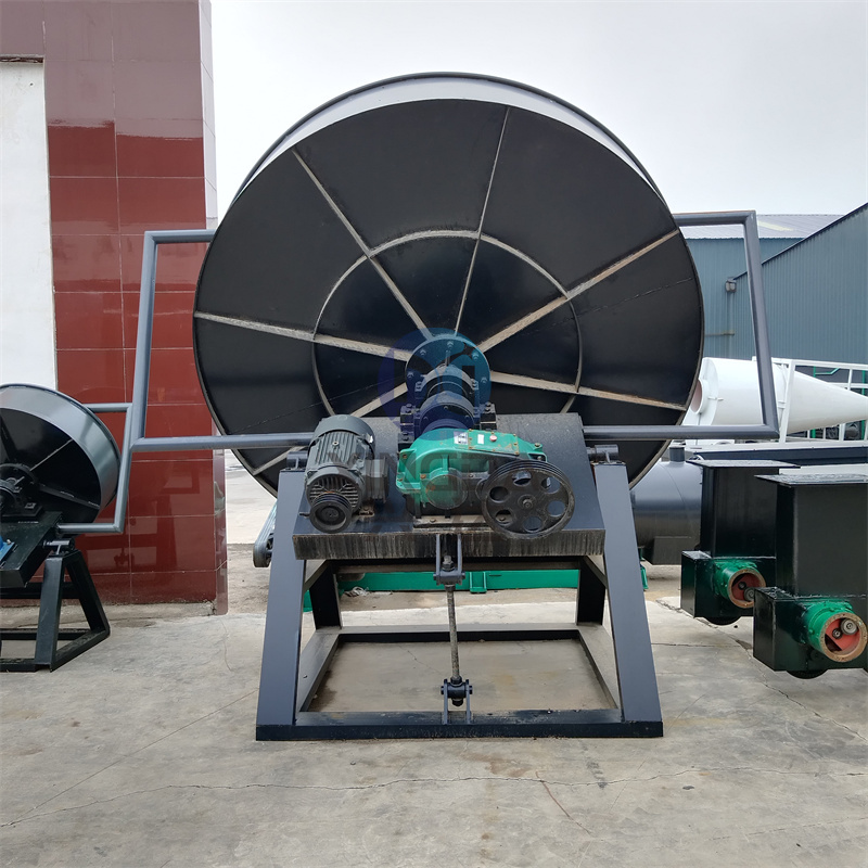 圆盘造粒机是整套有机肥生产线中的一款有机肥造粒设备。在有机肥生产线中担当起到造粒作用。 圆盘造粒机造粒盘盘角采用整体圆弧结构,成粒率可达百分之93以上。造粒盘设有三个出料口,便于间断生产作业,大大降低了劳动强度,提高了劳动效率,减速机与电动机采用柔性皮带传动,起动平稳,减缓冲击力,提高设备使用寿命。