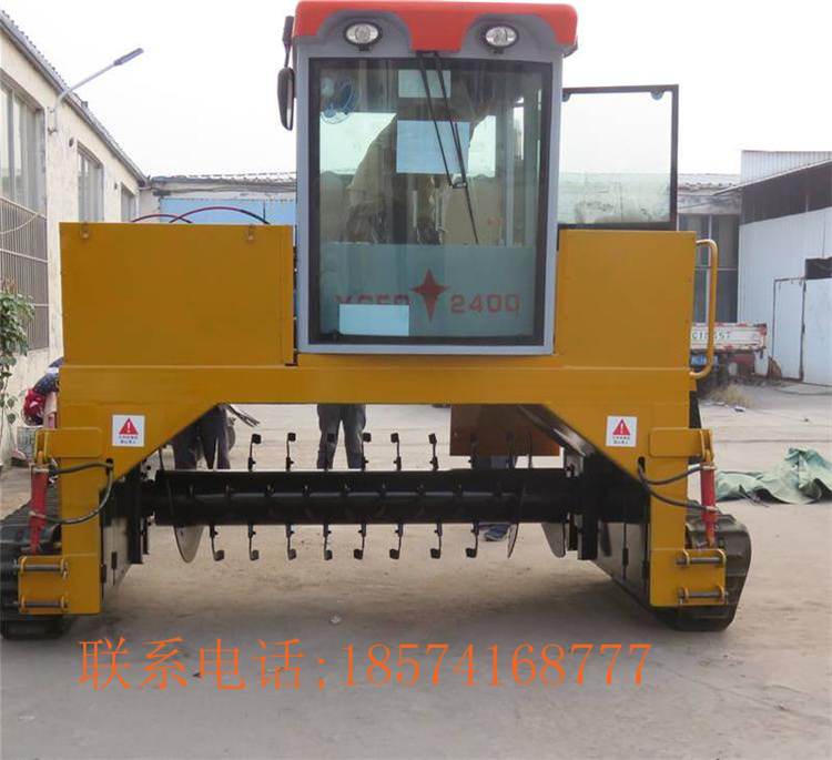 3.履带式翻堆机属大型翻抛机的一种,可液压操作系统,拉杆式方向盘操作,履带行走,结实耐用,动力强劲,技术先进,产量大、翻抛能力强,翻抛滚筒液压升降调节,自动化程度高,操作简单易掌握。是有机物料耗氧发酵转化成有机肥的专业翻抛设备。