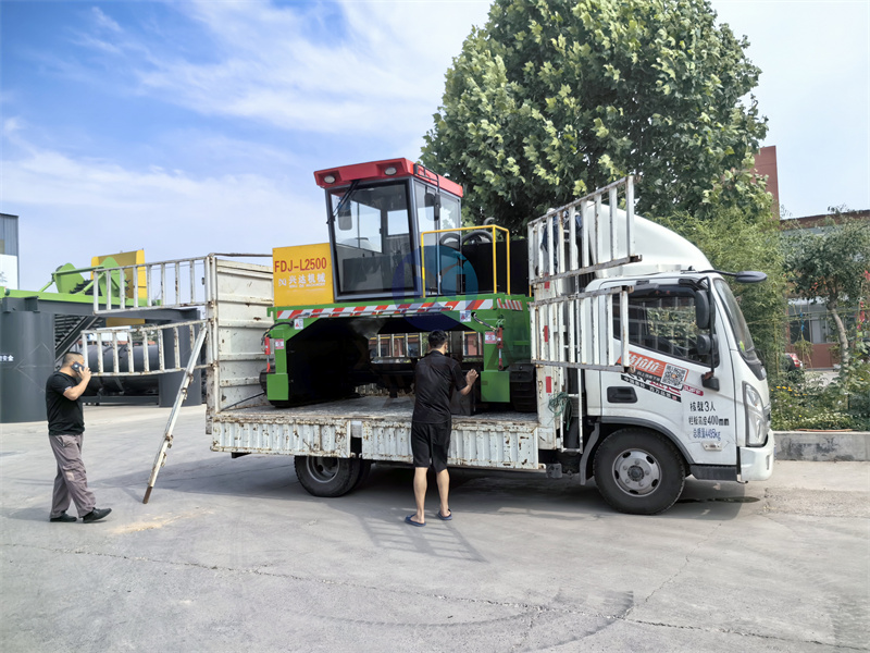 为山西客户打造的2500型两用履带翻抛机装车发货:履带翻抛机是整套有机肥生产线中的一款有机肥翻堆设备。在有机肥生产线中担当起到翻抛物料的作用。 履带式翻堆机,水分大的物料原地不会打滑,爬窝现象,终身不会更换轮胎.拉杆操作原地180°转弯调头,淘汰了方向盘式原地无法调头的烦恼,节省场地,人工柴油,国内新型产品。该设备主要用于在条垛式发酵条件下对料堆进行翻抛供氧。卧式螺旋翻抛结构、液压升降、履带行走。