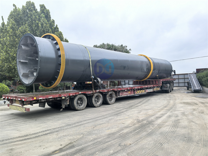 发往曲阜第一车有机肥设备:24米长的有机肥烘干设备马上就要出货了:近年来国内外还在研究喷雾干燥装置。这些设备一般都利用热烟气进行对流烘干回转烘干机筒体一般为单直筒型,安装时筒体与水平成一倾斜角度,物料从高端进入,随着筒体的回转缓缓流向低端后卸出。在中小型水泥厂中,烘干机的筒体长度一般为6~20m,以保证物料在烘干机内的停留时间,满足烘干工艺要求。出热风炉的热气流和物料在筒体内以顺流或逆流形式进行热交换。