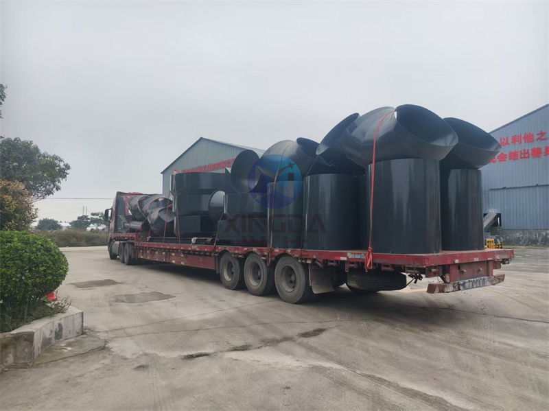 第五车:有机肥烘干机弯头设备及有机肥设备控制柜等正在装车进行中:有机肥烘干机可将高达70-80含水量的禽畜粪便一次直接烘干贮藏水分,整个过程在封闭系统内进行,从而减少干燥过程中对环境的污染。设备主要由热源、上料机、进料机、回转滚筒、出料机、物料破碎装置、引风机、卸料器和配电柜构成;脱水后的湿物料加入干燥机后,在滚筒内均布的抄板器翻动下,物料在干燥机内均匀分散与热空气充分接触,加快了干燥传热﹑传质。在干燥过程中,物料在带有倾斜度的抄板和热气质的作用下,至干燥机另一段星形卸料阀排出成品。