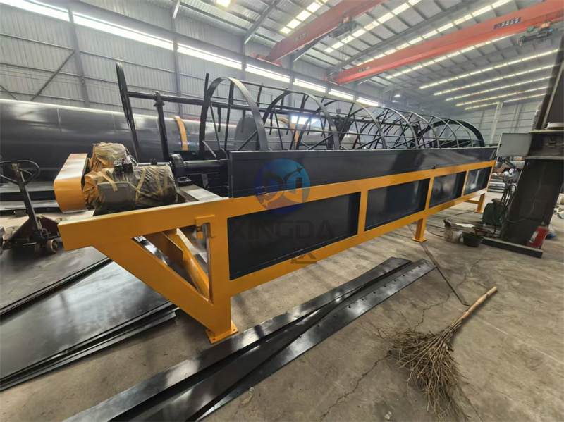 有机肥设备生产现场:为济宁客户打造的一台有机肥筛分机正在加工进行中:该系列滚筒式筛分机是有机肥生产中的常用设备,其主要用于成品与返料的分离,也可实现产品的分级,使得产品 均匀分类。滚筒筛分机是由滚筒、机架、漏斗、减速机、电动机等五个部分构成。物料由进料口进入滚筒后, 一方面 随着滚筒转动而被筛选, 一方面物料沿着滚筒的斜度向前流动,通过不同孔径的筛网逐步被筛出。物料筛出后落入各 自的漏斗,然后由人工或皮带输送至成品区。该机采用了组合式筛网,便于维修与更换,其结构简单、操作方便、运 转平稳,是肥料筛选分级的理想设备。