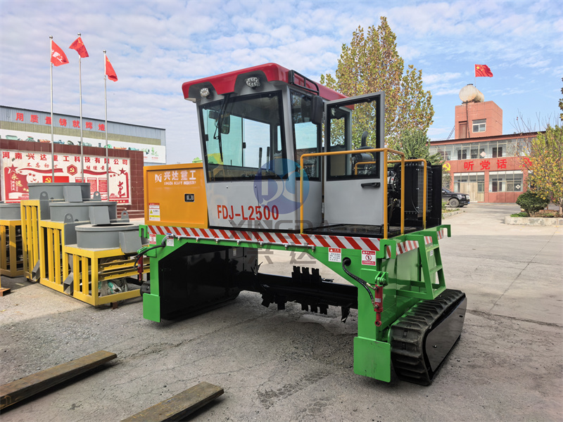 一台发往济源的2.5米有机肥翻抛设备履带翻抛机准备出货:兴达重工科技公司是专注于生产有机肥设备的厂家,种类多,型号全。履带翻堆机属于地面堆放发酵设备,是目前较节省土建、人力资源的一种制肥模式。需将物料堆成长形条垛由翻堆机定时对物料实施搅拌、破碎,在好氧条件下进行有机物的分解。兼有破碎的功能,大大节省了时间和劳力,使有机肥厂生产效率和产品质量有显著提高,成本大大降低。不仅比深槽发酵速度快的多,还有效防止了发酵过程中硫化氢、胺气、吲哚等有害、恶臭气体的产生,符合环保要求。