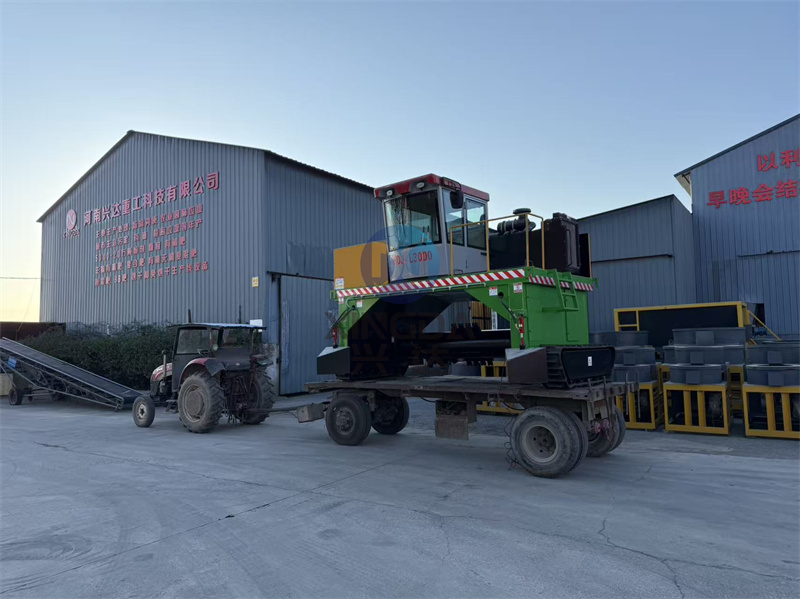 发货三门峡:3000型加工好的有机肥履带翻抛设备正在装车进行中:履带翻抛机是整套有机肥生产线中的一款有机肥翻堆设备。在有机肥生产线中担当起到翻抛物料的作用。 履带式翻堆机,水分大的物料原地不会打滑,爬窝现象,终身不会更换轮胎.拉杆操作原地180°转弯调头,淘汰了方向盘式原地无法调头的烦恼,节省场地,人工柴油,国内新型产品.
