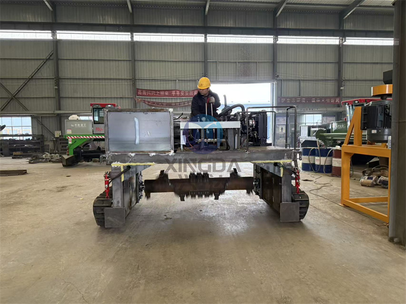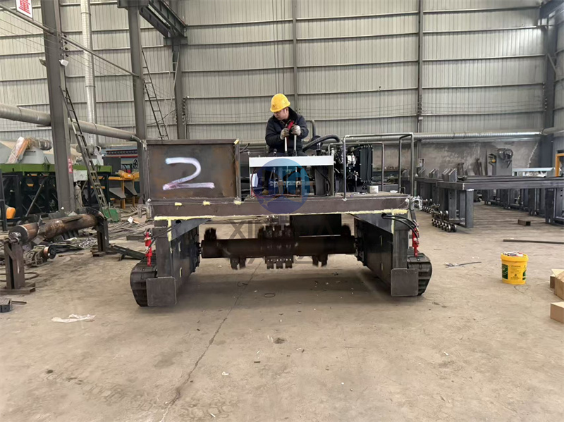 一台台有机肥履带翻抛机在有机肥设备厂车间开始加工了:履带翻堆机通常由动力系统、传动装置、翻抛机构和控制系统组成。动力系统一般采用柴油发动机或电动机,提供足够的动力以驱动履带和翻抛机构工作。传动装置则负责将动力传递到各个工作部件,确保设备运行平稳可靠。翻抛机构是核心部分,通过旋转的刀片或耙齿将有机物料翻动,使其充分接触空气,加速发酵过程。控制系统则可以根据操作需求调整设备的工作参数,如翻抛速度和深度等。