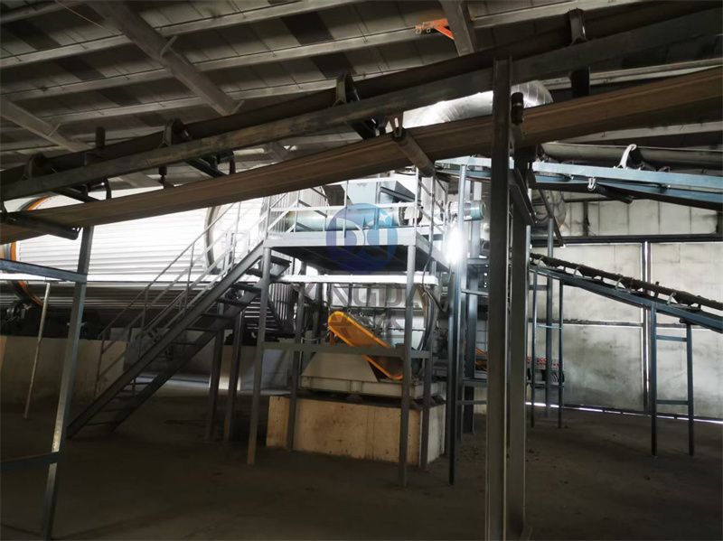 常德安装现场:颗粒有机肥生产线设备已经开始安装:有机肥颗粒生产线主要是将原料发酵腐熟以后含水量约30%-35%的有机废弃物送入粉碎筛分,后与粘结剂以及需配比的其他成分如:氮磷钾等元素使所含矿物元素达到所需标准(总养分含量低于15%),然后由搅拌机进行搅拌混合,经充分混合后的物料由皮带输送机均匀连续的喂入造粒机制粒,经抛光整形机抛圆成球状颗粒,出来后用烘干机进行低温大风量烘干(≤65℃)后进行冷却、筛分、包膜,合格产品由皮带输送到成品料仓,经电脑定量包装系统计量,包装入库,不合格的返回粉碎机进行粉碎再造粒。
