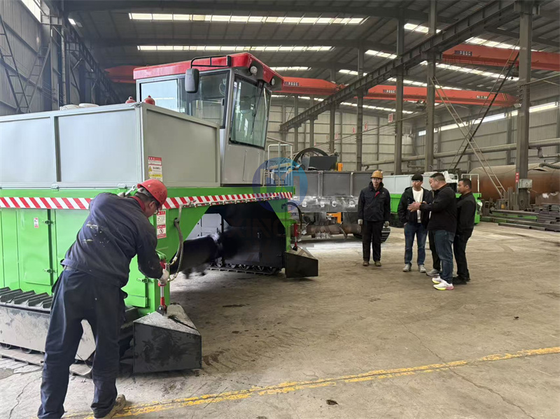 准备前往绥化的有机肥履带翻抛机和配套有机肥设备正在装车:手动式履带翻堆机主要用于在条垛式发酵条件下对料堆进行翻抛供氧。卧式螺旋翻抛结构、液压升降、履带行走。 履带式翻堆机(条垛式翻堆机):将物料堆成长条形的垛状,设备骑在垛上进行翻抛作业。投资较小,但占地面积大,受天气影响较大。