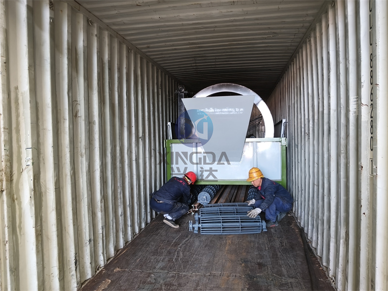 第二车准备出口的有机肥生产线设备的装箱工作正在进行中:有机肥颗粒生产线主要是将原料发酵腐熟以后含水量约30%-35%的有机废弃物送入粉碎筛分,后与粘结剂以及需配比的其他成分如:氮磷钾等元素使所含矿物元素达到所需标准(总养分含量低于15%),然后由搅拌机进行搅拌混合,经充分混合后的物料由皮带输送机均匀连续的喂入造粒机制粒,经抛光整形机抛圆成球状颗粒,出来后用烘干机进行低温大风量烘干(≤65℃)后进行冷却、筛分、包膜,合格产品由皮带输送到成品料仓,经电脑定量包装系统计量,包装入库,不合格的返回粉碎机进行粉碎再造粒。