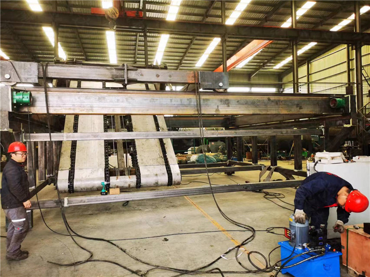 结构:该机分为两个机组:翻抛机组、换槽机组,其中翻抛机组主要负责在发酵槽内前后移动翻抛,换槽机组则负责翻抛机组与每个发酵槽之间来回移动。