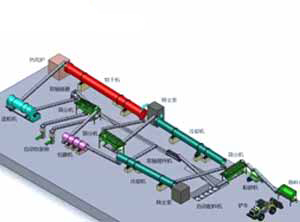 由于生物肥料的生产,以有机质为主,纤维素多、成形条件差,并添加有造肥功能的活细菌群、生产过程以不宜接触高温等特点。造料方式上不宜采用园盘造粒和转鼓造粒方法,因为这二种工艺,要求原料的粉碎细度高,造粒水分高,一般含水量要达到30%左右,为此烘干的负荷大,有效细菌损失也大,而且成球率低,(60%~70%左右),生产过程中粉尘很大,操作环境很差,因此对于有机生物肥的生产,应以环境挤压法生产的比较好,环境挤压对原料粉碎要求低,成型率高(95%以上),成开后颗粒含水量低,烘干的负荷很小,可以减少有效细菌的损失,粉尘小,操作环境较好。