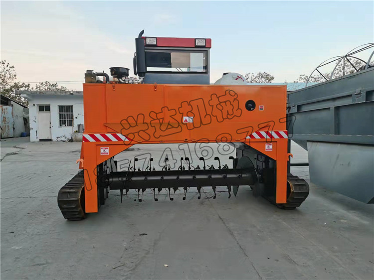 生物有机肥履带翻抛机地面堆放发酵模式是目前节省土建、人力资源的一种制肥模式。大大节省了时间和劳力,使有机肥厂生产效率和产品质量有显着提高,成本大大降低。翻堆机工作时可以很有效地把污泥、粘稠鸡粪等物料与菌种、秸秆粉搅拌均匀。
