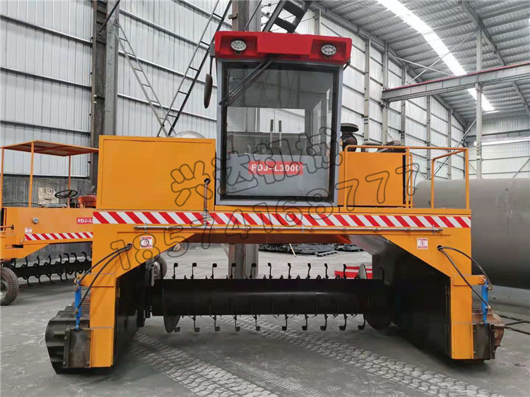 果蔬渣履带翻抛机地面堆放发酵模式是目前节省土建、人力资源的一种制肥模式。大大节省了时间和劳力,使有机肥厂生产效率和产品质量有显着提高,成本大大降低。翻堆机工作时可以很有效地把污泥、粘稠鸡粪等物料与菌种、秸秆粉搅拌均匀。